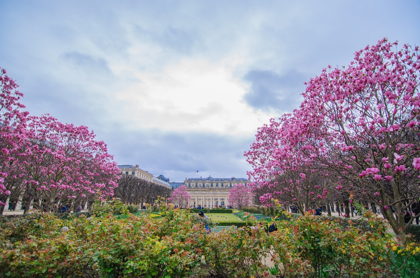 На фото я Вам швидше покажу весну у садку Пале -Рояль,ніж сам палац, але розповісти, поміж тим, трошки про нього не завадить.